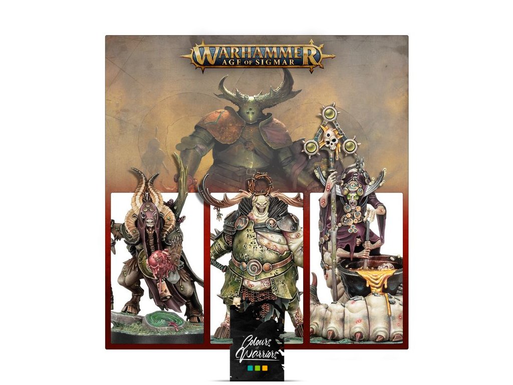 Tato vícedílná plastová sada umožňuje sestavit Gelgus Pust, Belga the Cystwitch a Shaman Foulhoof – tři výrazné postavy pro vaše armády Maggotkin of Nurgle ve hrách Warhammer Age of Sigmar. Jako Daemon Prince se Gelgus Pust tyčí nad svými smrtelnými následovníky a třímá své zbraně Malady a Contagion – brutální cep a zhoubnou čepel. Na stoupence Nurgla je překvapivě rychlý a jeho zvrácená podstata zamořuje samotné bojiště kolem něj. Belga slouží jako ohnisko zkažené magie Grandfathera Nurgla a Foulhoof inspiruje Pestigors k ještě větším projevům nekontrolovatelného znesvěcování.