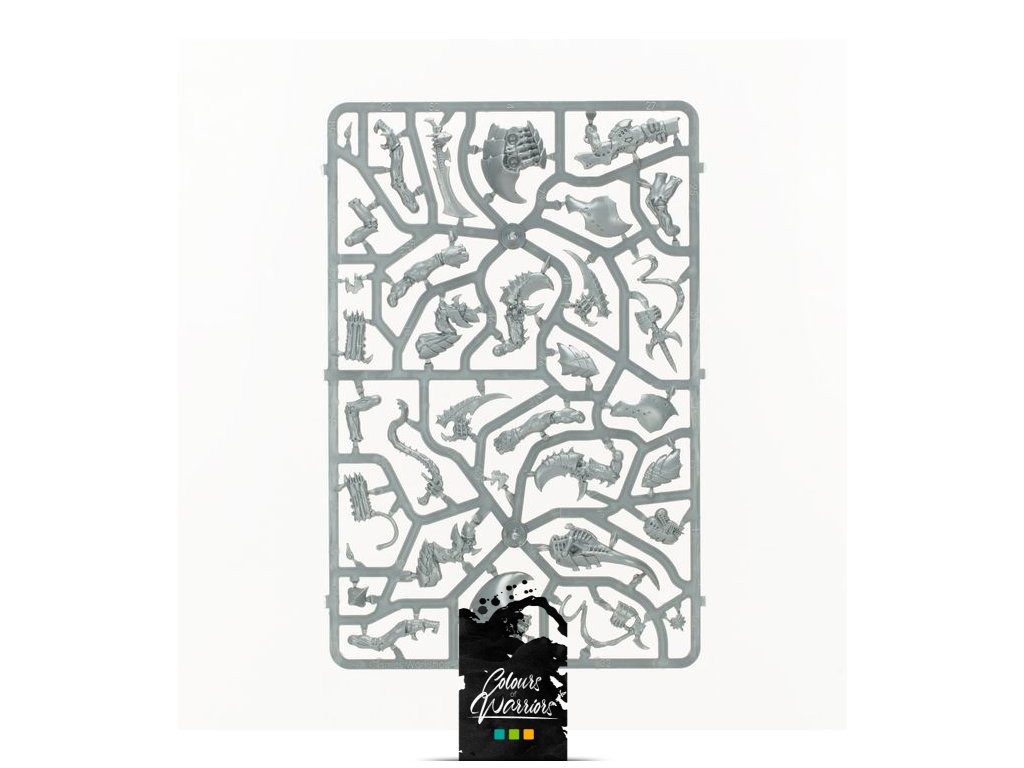 Miniatury nejsou složené ani nabarvené. Doporučujeme Citadel Plastic Glue a Citadel barvy.